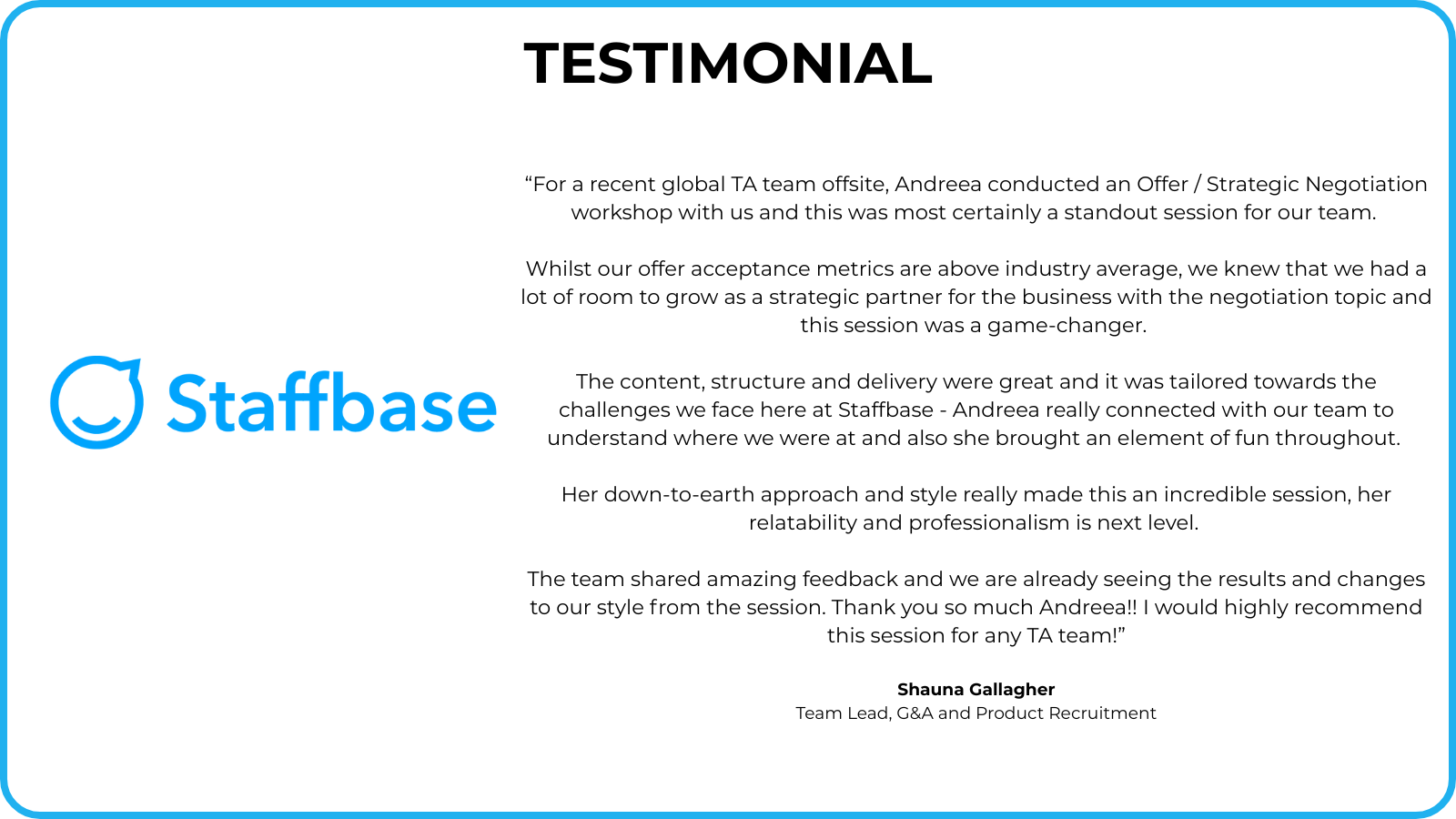 Whilst their offer acceptance rates were above industry average, the team identified an opportunity to build confidence in stakeholder conversations and improve how they positioned compensation throughout the recruitment process.