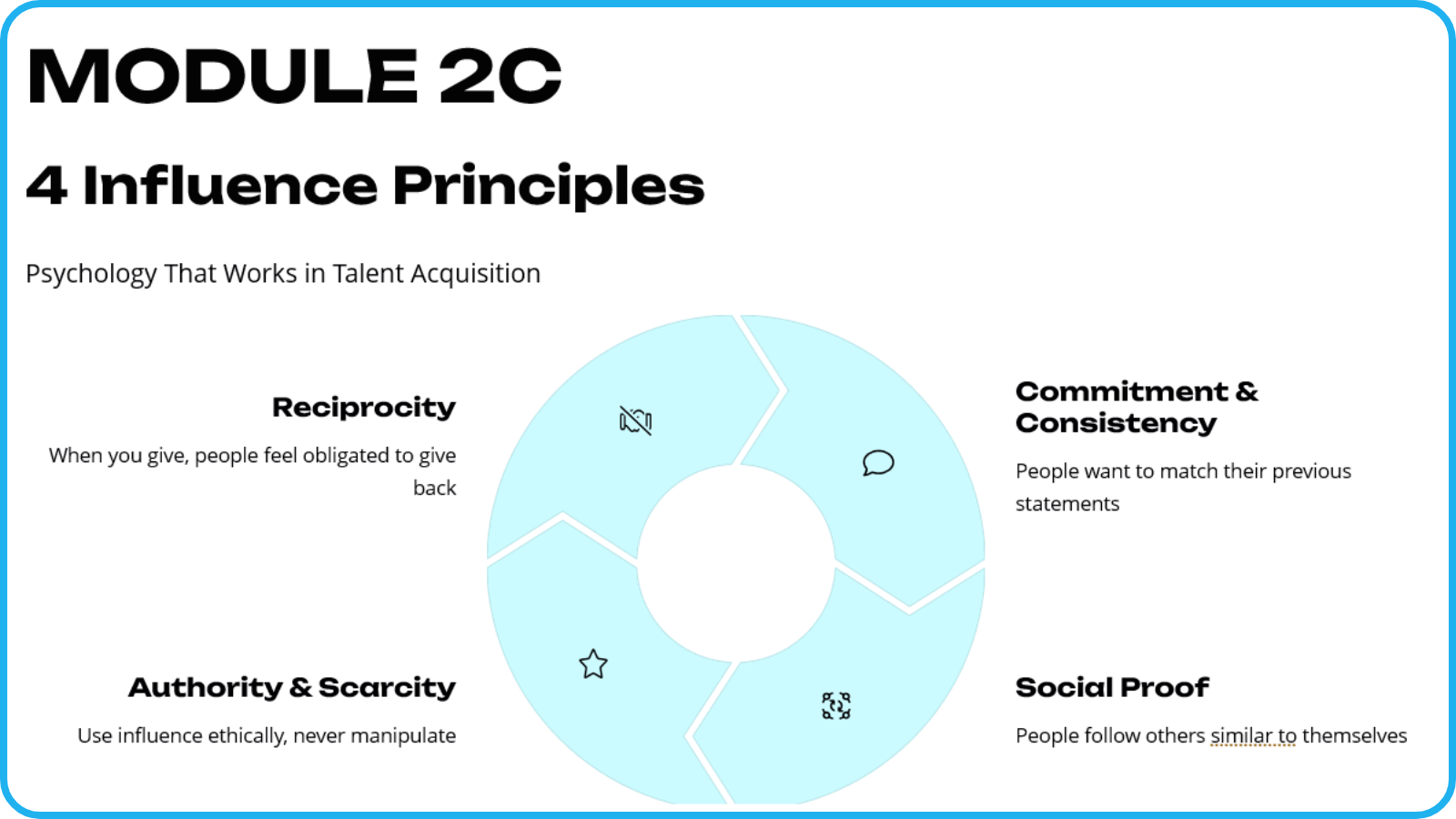 The final module covered techniques for building candidate commitment throughout the recruitment process.