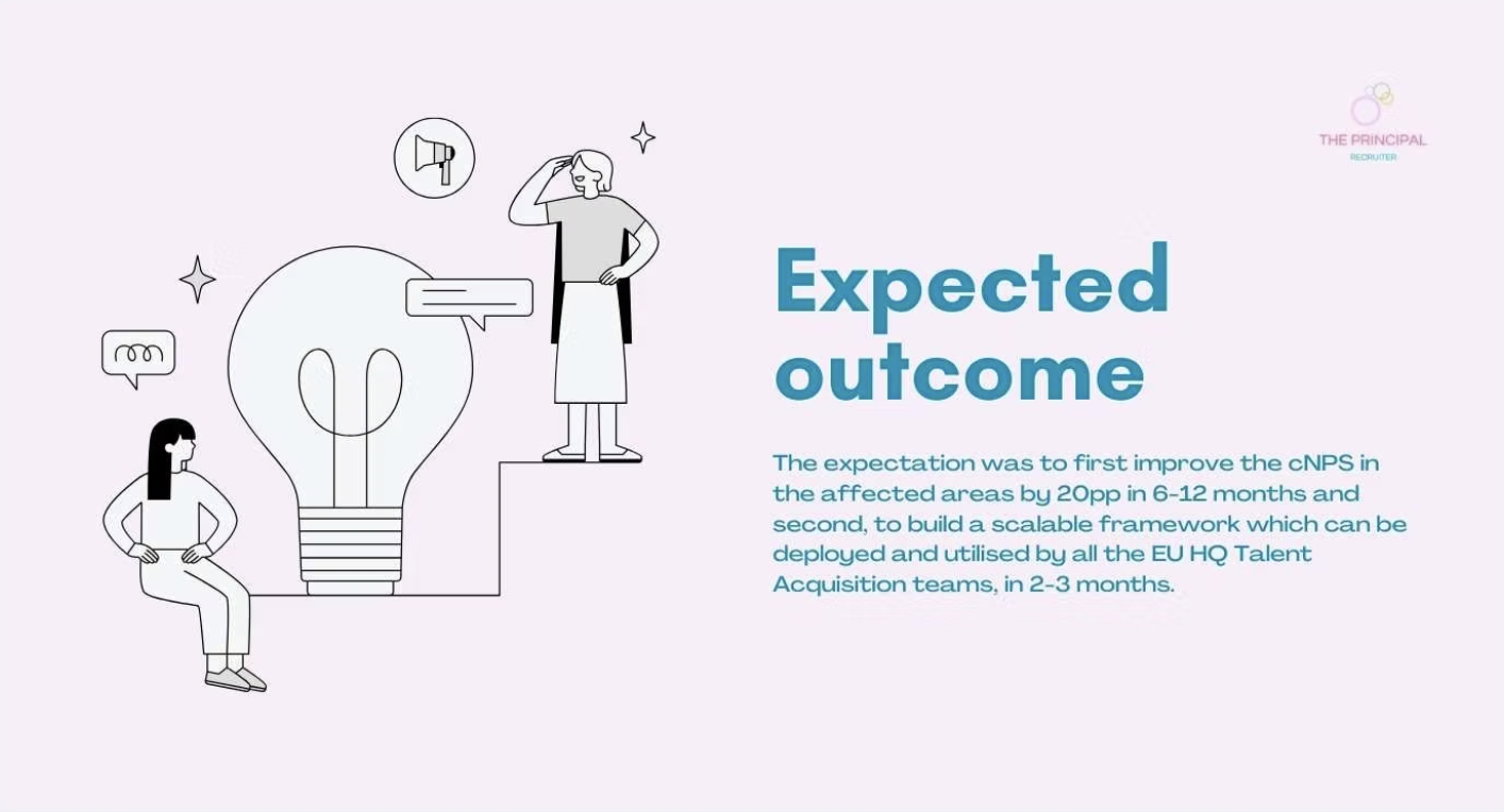 • Outcome: Delivery of highly customisable content and artifacts suitable for adaptation by any TA team, revamp of the automated email content, creating a “Centre of Excellence” for the entire EU HQ talent team, a group who would act as guardians and ambassadors for the updated hiring experiences.