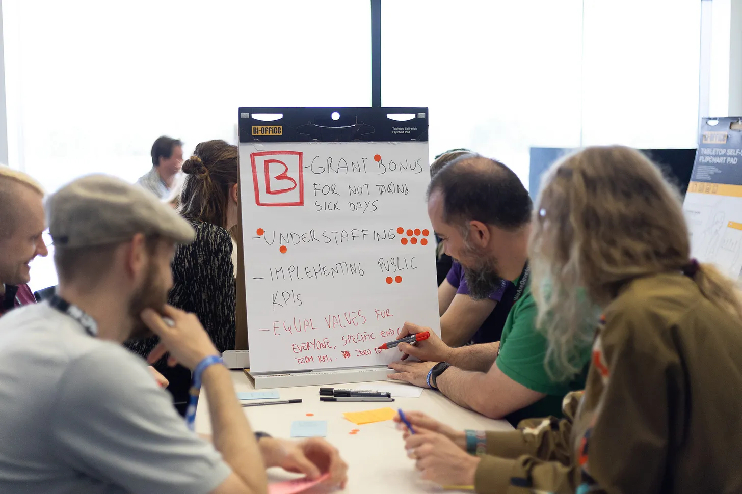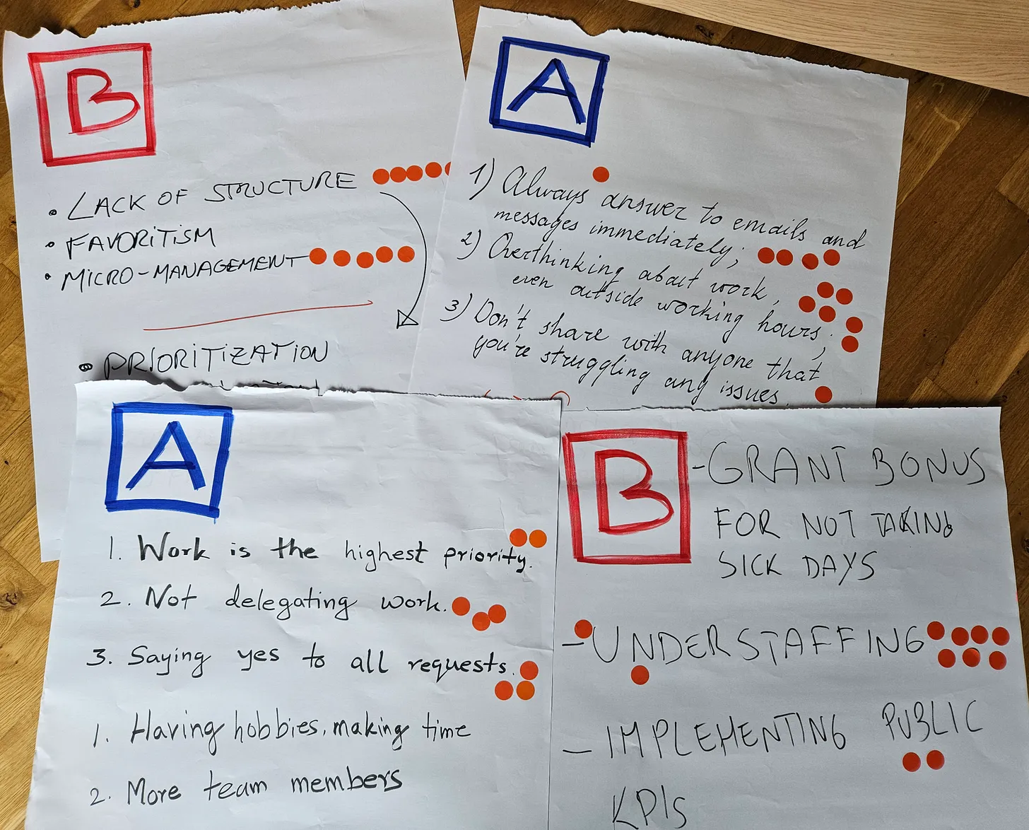 Participants shared real talk in small groups, identifying behaviors in themselves and in their companies that silently fuel burnout. We used dot voting to see how common these burnout traps really are… and let’s just say, the dots were everywhere.
